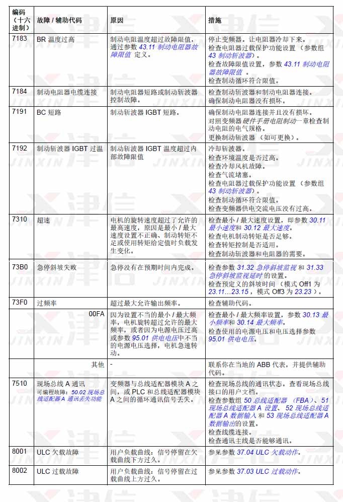 ABB ACS580變頻器故障代碼7183,7184,7191,7192,7310,73B0,73F0,7510,8001,8002