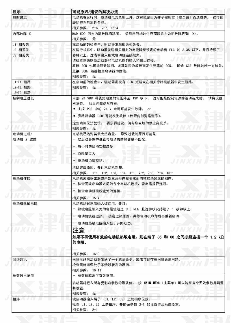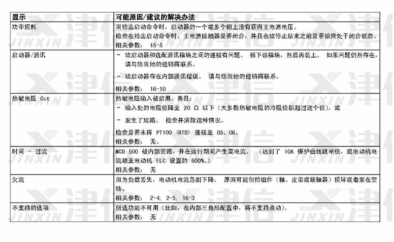 在軟啟動器使用過程中,如果偵測到故障信息,軟啟動器會在日志中記錄相關信息,還可能跳閘或發(fā)出警告。軟啟動器跳閘后,只有將該軟啟動器復位才能重新啟動。 如果發(fā)出警告,則一旦消除了警告原因,軟啟動器便會自動復位。