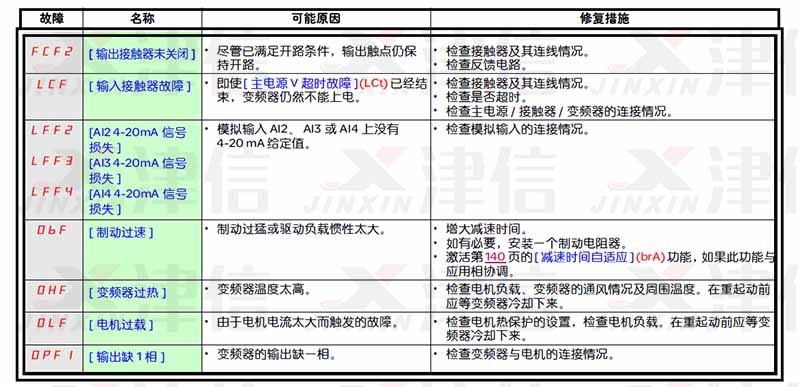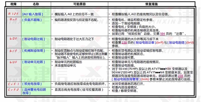 施耐德ATV71變頻器故障代碼和維修措施