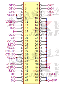 給變頻器送電后,變頻器面板顯示ERR37,根據(jù)故障解釋說明,檢查CPU小板反饋至控制卡的信號(hào)波形異常,有帶毛刺的尖雜波。測(cè)量點(diǎn)為下圖45,47號(hào)。