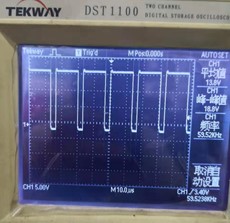 6,查看電源卡開關(guān)電源部分的圖紙,檢查IC2844的前級啟動電阻和整流橋均正常,最后檢查脈沖變壓器供給IC2844的次級供電回路,發(fā)現(xiàn)啟動電容降容超出15%,判定為損壞,將此電容更換后,再次上電機器顯示正常,測量開關(guān)管驅(qū)動波形正常,原故障修復(fù)。以下是2844輸出的正常波形。