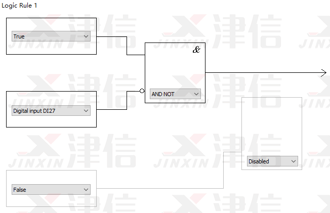Logic Rule 1判斷是否符合停止條件。在運行過程中,如果按下停止按鈕,27號端子斷開,經(jīng)過邏輯判斷,滿足停機要求,變頻器將停止輸出。