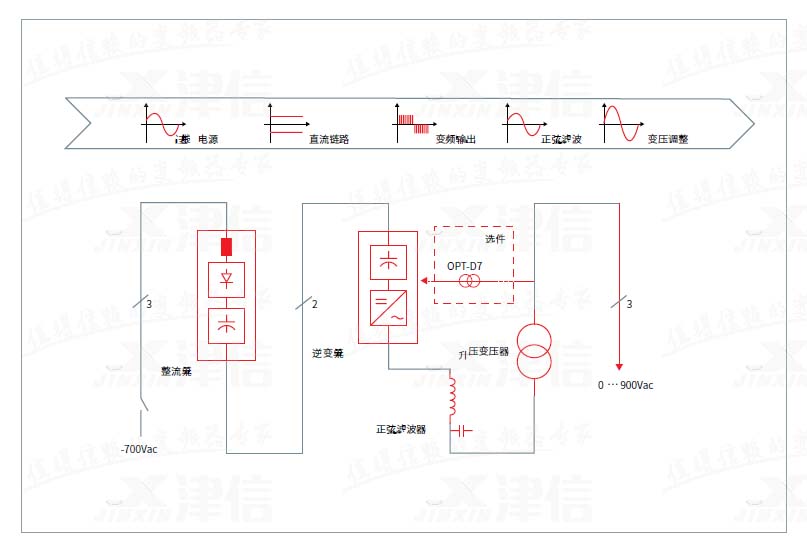 這個項目是Danfoss公司首次同天作電氣的合作項目;項目中采 用了以丹佛斯公司VACON® NX系列變頻器為電源核心的測試電源解決方案。單元+逆變單元+制動單元)、正弦濾波器、升壓變壓器、制動電阻以及輸出電壓切換開關構成。可以提供最高至2250V的正弦電壓輸出。天作電氣成柜。另外包含測試操作臺,以及為了滿足測試工藝而選用的各種傳感器,功率分析儀器等。