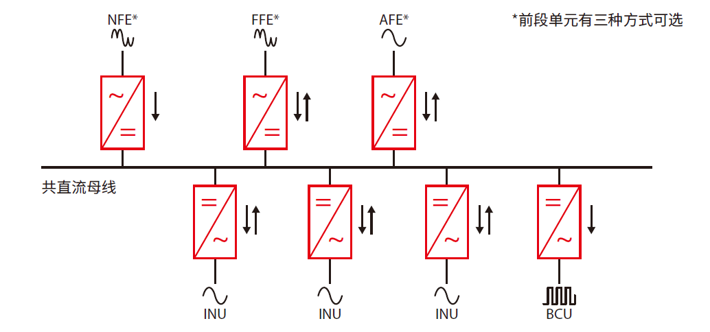 3,Vacon全面提供滿足各種復雜驅動需求的共直流母線產品,其功能特性完全基于 VACON® NX 系列變頻驅動產品的先進技術平臺,并可提供多種功能模塊的組合方式,擁有高效節能,電網諧波低,便于維護等優異特性和廣闊的應用空間。