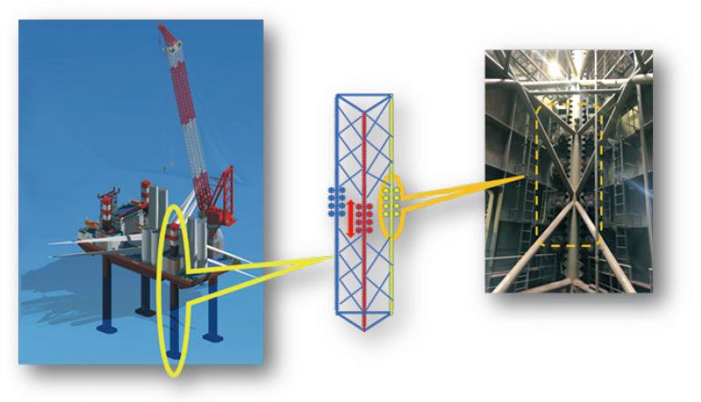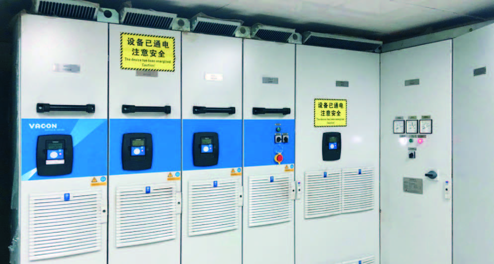 平臺(tái)的關(guān)鍵配置為變頻動(dòng)齒輪齒條升降系統(tǒng),整個(gè)平臺(tái)共有4個(gè)樁腿,可以自由上下升降,并且需要根據(jù)實(shí)際工況隨時(shí)調(diào)節(jié)三邊鋼結(jié)構(gòu)舷的應(yīng)力。整個(gè)平臺(tái)的重量都承受在4個(gè)樁腿上,因此對于啟動(dòng)時(shí)候的電機(jī)力矩有很高的要求。因此公司采用Danfoss VACON® NXPCommon DC Bus System系列共直流母線驅(qū)動(dòng)產(chǎn)品作為抬升系統(tǒng)的電氣驅(qū)動(dòng)使用。