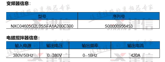 客戶公司原使用湖南某電氣公司提供的電磁攪拌逆變電源,因使用過程中經常報警,現上海津信幫助客戶改用偉肯變頻器作為電磁攪拌的驅動裝置的方案。