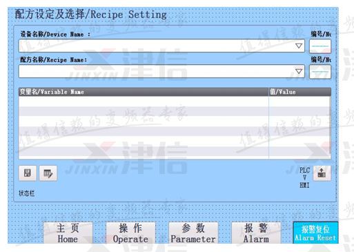 在實際使用中,因客戶產(chǎn)品的多樣性,需要不同的工藝參數(shù),通過西門子觸摸屏的配方功能,可以保存客戶不同產(chǎn)品的工藝參數(shù),并可以快速切換不同配方,提高了設(shè)備的通用性。